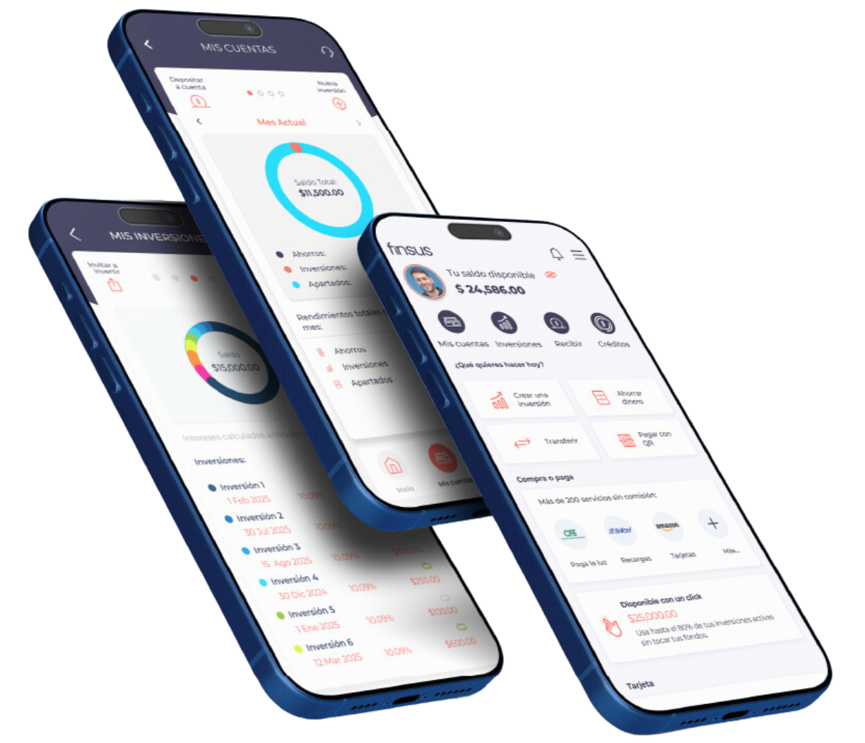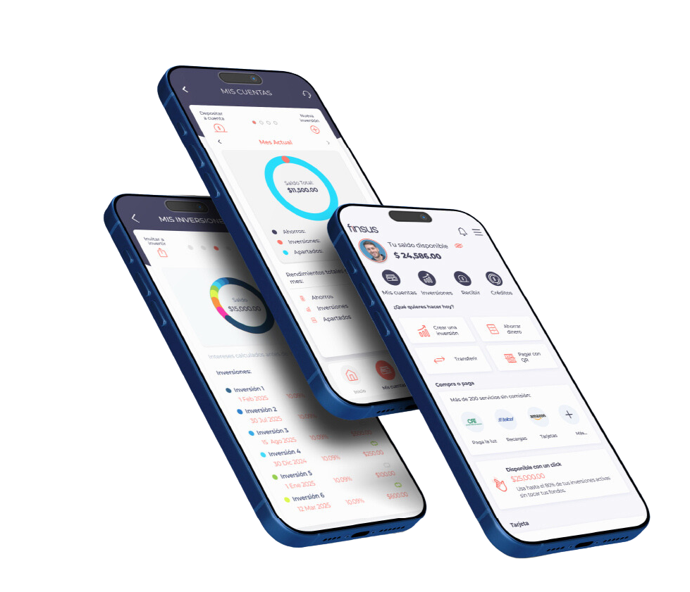 En la sección de “Apartados”, encontrarás “finsus+”. En este apartado, podrás mantener tu dinero disponible 24/7, con un rendimiento del 8.09% anual.