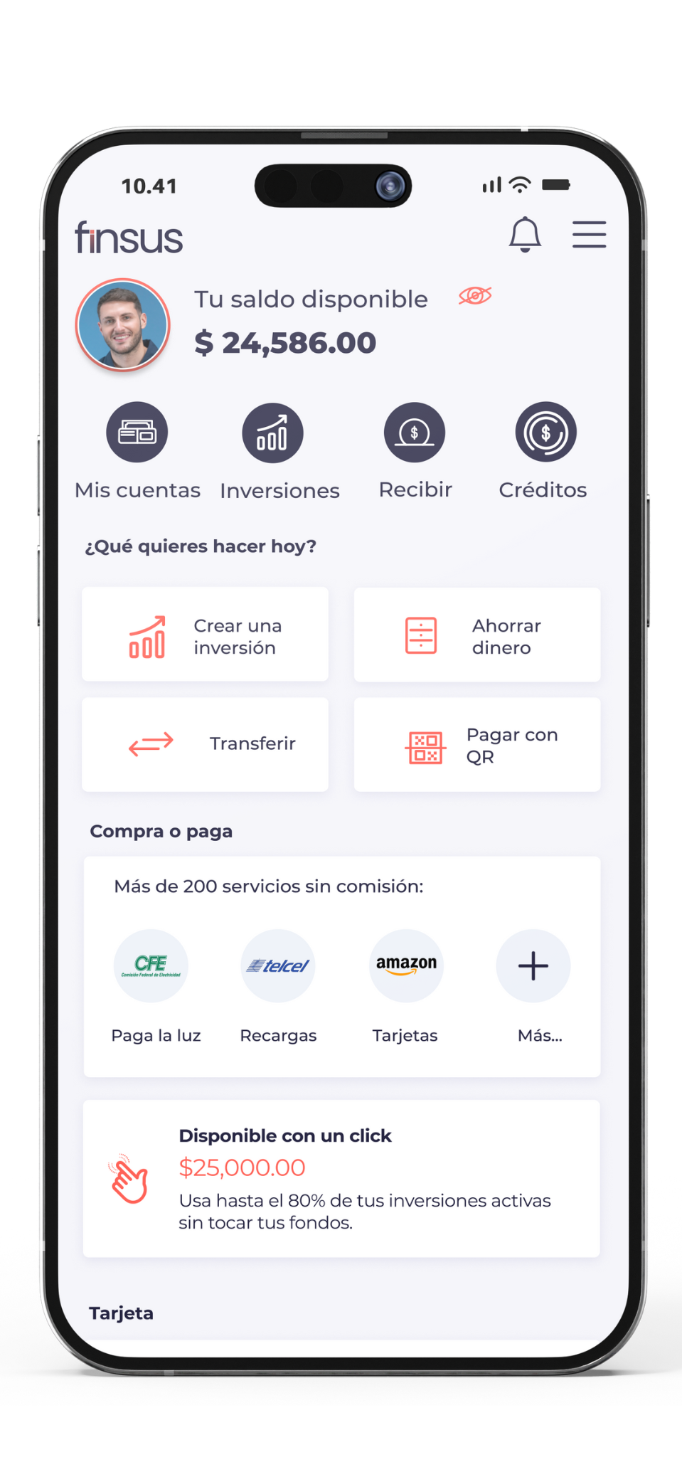 En la sección de “Apartados”, encontrarás “finsus+”. En este apartado, podrás mantener tu dinero disponible 24/7, con un rendimiento del 7.08% anual.